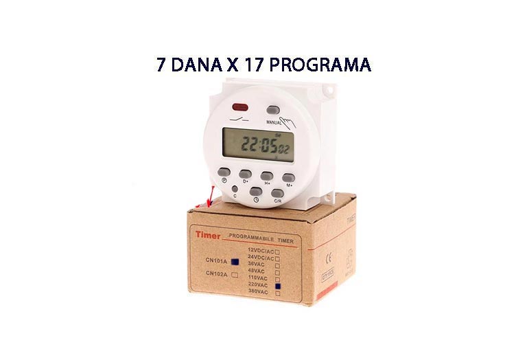 Ukoliko nam pak treba neki posao odraditi u tačno zadato vrijeme određenog dana, minuta i sati, onda je tu vremenski tajmer koji se može isprogramirati za čitavu sedmicu dana po 17 programa u tačno određeno vrijeme kada će šta uključiti ili isključiti.
