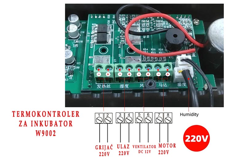 - Broj izlaznih kanala: 3 )grijanje, motor za okretanje jaja, ventilator i ugrađeni alarm)
