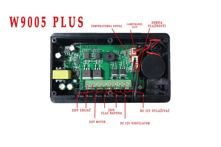 Pored toga ima izlaz za kontrolu vlage u svom sastavu, izlaz za ventilator od 12 volti kao i izlaz za motor za okretanje jaja veće snage.